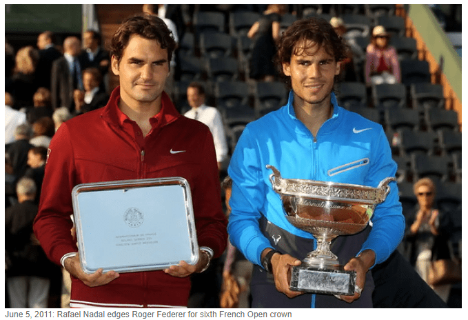 UPDATE: From the caption above we now know that Nadal knocked off Federer…this time.