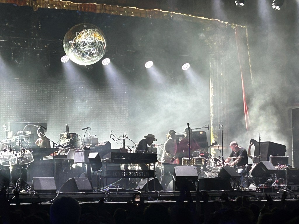LCD Soundsystem was showing off, or maybe showing us how far they’ve come. Once an electronic act, or dance band, they have made the full metamorphosis to a jam band. They are NOT Phish, but more like the Grateful Dead, finding new ways to keep our favorite songs alive, while surprising us at the same time. That’s what Saturday night was, a big surprise. I was expecting more of their hits, but what we got was a combination of all their music, and when you play four shows in a row, you have to find new ways to keep the rabid fans interested. They did exactly that by resuscitating a discography of albums that many of us know by heart.