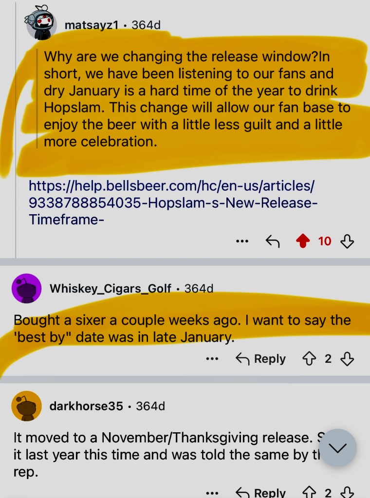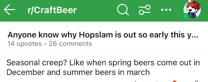 Apparently, due to Dry January, people are drinking less Hopslam as they restrain from alcohol while the DIPA hits store shelves mid month. Last