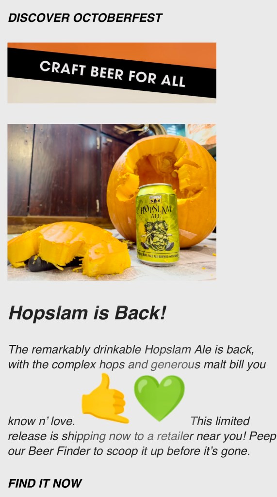 If you saw Hopslam in your local beer cooler, raise your hand. Also, raise your hand if you’re confused like me. Or, maybe a bit disturbed? Was it out of date, or should it be here, front and center, in the local beer cooler? Turns out, it should be on sale in November.