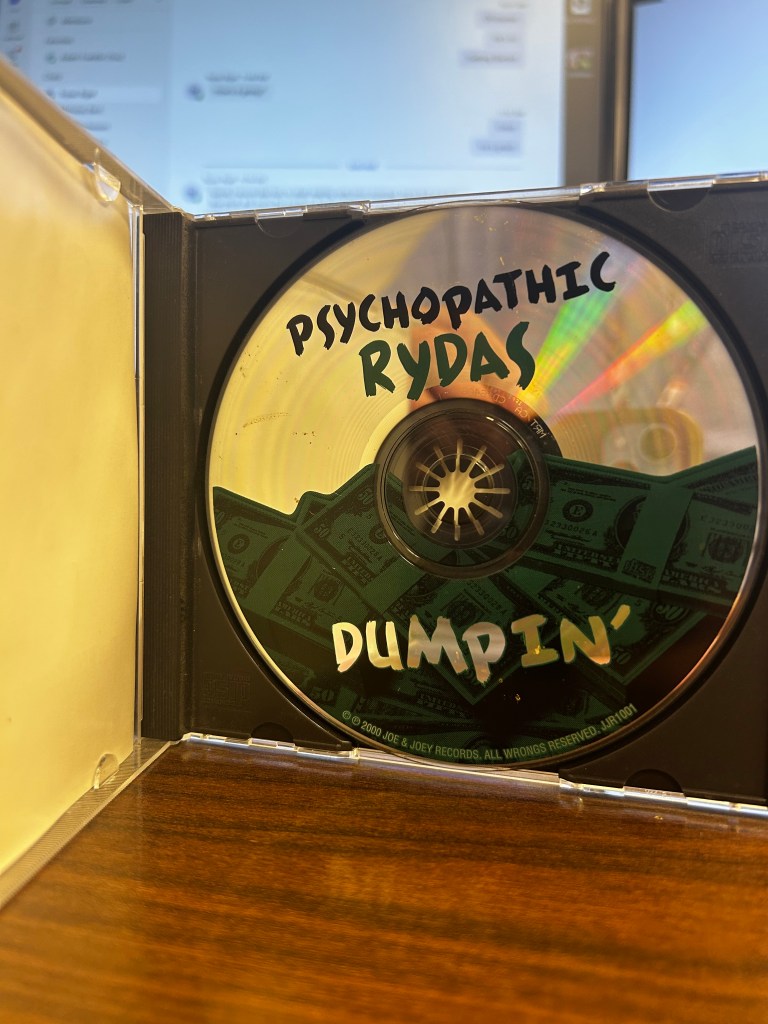 According to Wikipedia, the liner notes of The Amazing Jeckel Brothers by Insane Clown Posse revealed a secret offer: fans could mail in proof of purchase to receive Dumpin’, a full-length album by Psychopathic Rydas—a gangsta rap parody group. Released on the low-key Joe & Joey Records imprint, the album (along with all future Rydas projects) couldn’t be officially distributed due to its heavy use of unlicensed samples and beats. That means you had to jump through some serious hoops to get your hands on it—mailing in that dreaded proof of purchase like you were sending off for a toy from the back of a Captain Crunch box. As a result, not many copies exist, making these albums extra rare. They look pretty bare-bones too—essentially a printed CD-R with a simple, one-sided color insert. Minimalist, to say the least.
