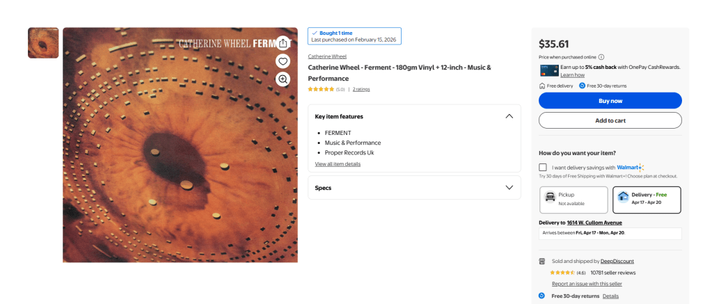 “Black Metallic” didn’t just make me a fan of Catherine Wheel—it made them work for me. And yeah, I’ll coin the phrase if I have to (Also, Walmart has the version on vinyl that comes with the original live EP that came with the first version of the US release on CD).